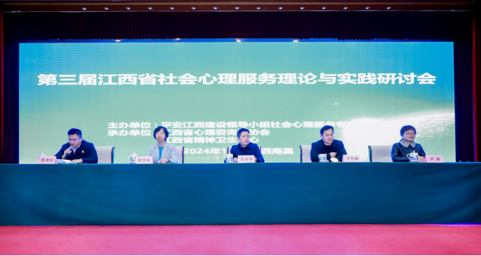 12月21日,第三届江西省社会心理服务理论与实践研讨会在南昌召开。本次研讨会由平安江西建设领导小组社会心理服务专项组主办,江西省心理咨询师协会、江西省精神卫生中心承办。江西省平安办、江西省卫生健康委派员出席会议,平安江西建设领导小组社会心理服务专项组21个成员单位、各设区市市委政法委、卫生健康委负责人,三级公立精神专科医院负责人,江西省心理咨询师协会、966525热线志愿者及相关专业人士等300余人参加会议,各县级相关人员线上参会和观看,各单位代表相继进行经验交流发言。